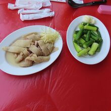 イカ団子、アスパラ、鶏料理、後もう一品を注文