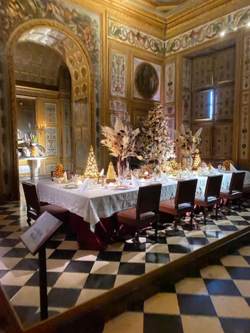 ベルサイユ宮殿を作る際に参考にしたと言われているお城です。クリスマスシーズンに行くと、お城の中はデコレーションされておりとても華やかな雰囲気です。赤いマントを無料で借りて見学出来ました。お城の中では、当時の衣装を借りて(子供4€、大人6€)見学することもできます。庭園にはカフェがあり、焚き火にあたりながら、サンドイッチやワッフルなどを食べることもできます。お土産屋さん近くにはレストランもあります。キッズメニューが12.5€、大人メニューが17.5€でした。なかなかおいしかったです。