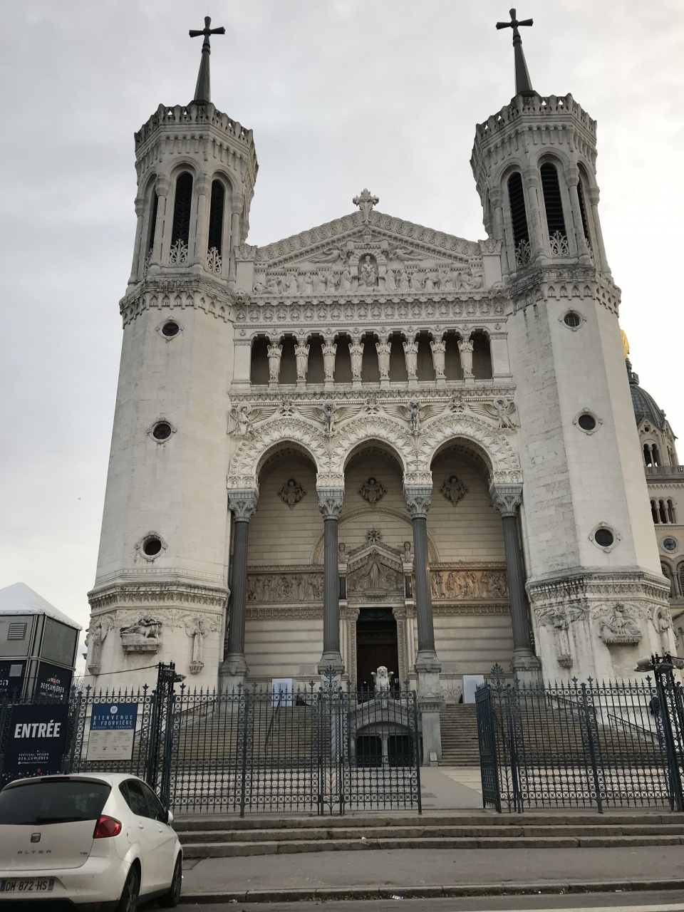 リヨンの観光はこのノートルダム大聖堂からスタートしました。パール・デュー駅から地下鉄でVieux Lyon駅まで行き、そこからフニクレール というケーブルカーに乗りました。かなり高台にあります。地上に出ると目の前が、このノートルダム大聖堂で、その迫力に圧倒されました。