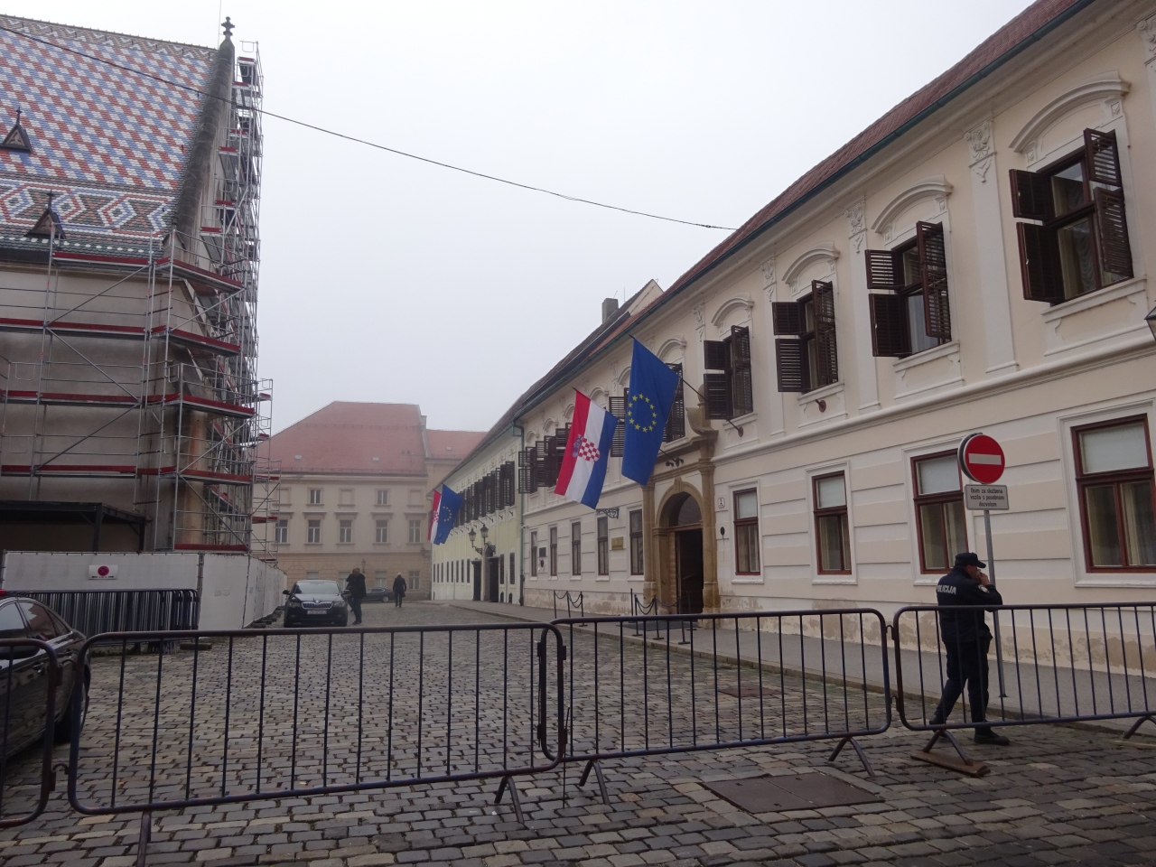 ザグレブの聖マルコ教会のすぐお隣にあるバンスキドゥヴォリです。旗がたっていて、何か国の機関だなというのが分かります。聖マルコ教会の裏側から写真を撮ると、この建物の大きさがよく分かりました。素朴な建物でよいですね。