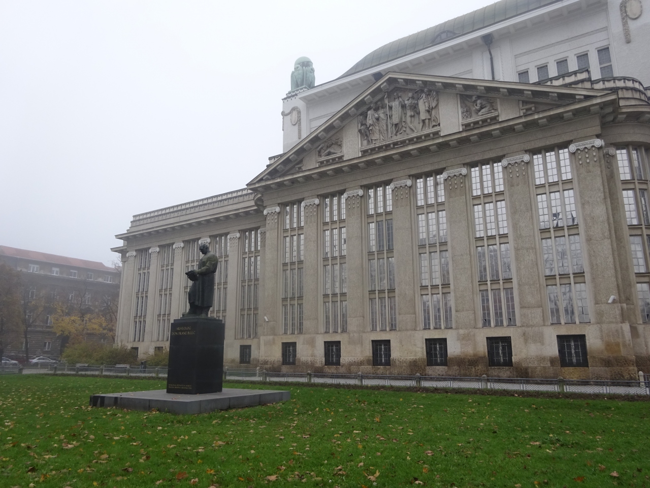 ザグレブのHrvatski Drzavni Arhiv です。図書館のようなところと思っていたので、ぜひにと入ってみましたが、どうもちがうようで入れませんでした。建物の北側から入ったので、入り口がたぶん別にあったのかもしれません。建物はすごく立派で、南側の銅像は印象的です。