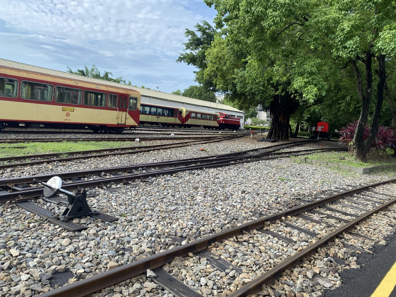 阿里山向けの電車や昔のSL機関車が展示してあるところです。