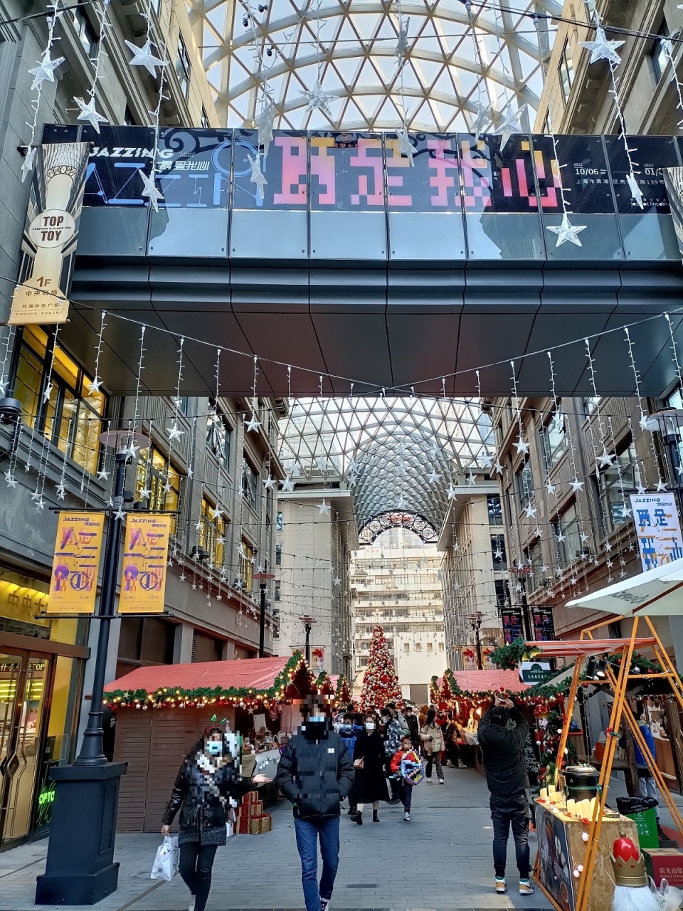 2021年に整備された、外灘エリアの新しい観光スポットです。丁度クリスマスマーケット開催中で、欧米の方を含めておしゃれな出で立ちの買い物客が大勢ぶらぶらと歩いて雰囲気を楽しんでいました。