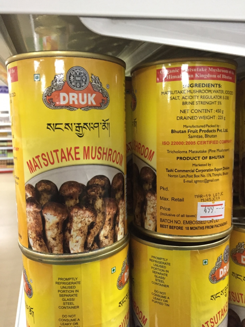 ブータンの乾燥まつたけや缶詰のまつたけも置いてあり、お土産屋さんよりかなり安く売っていました。