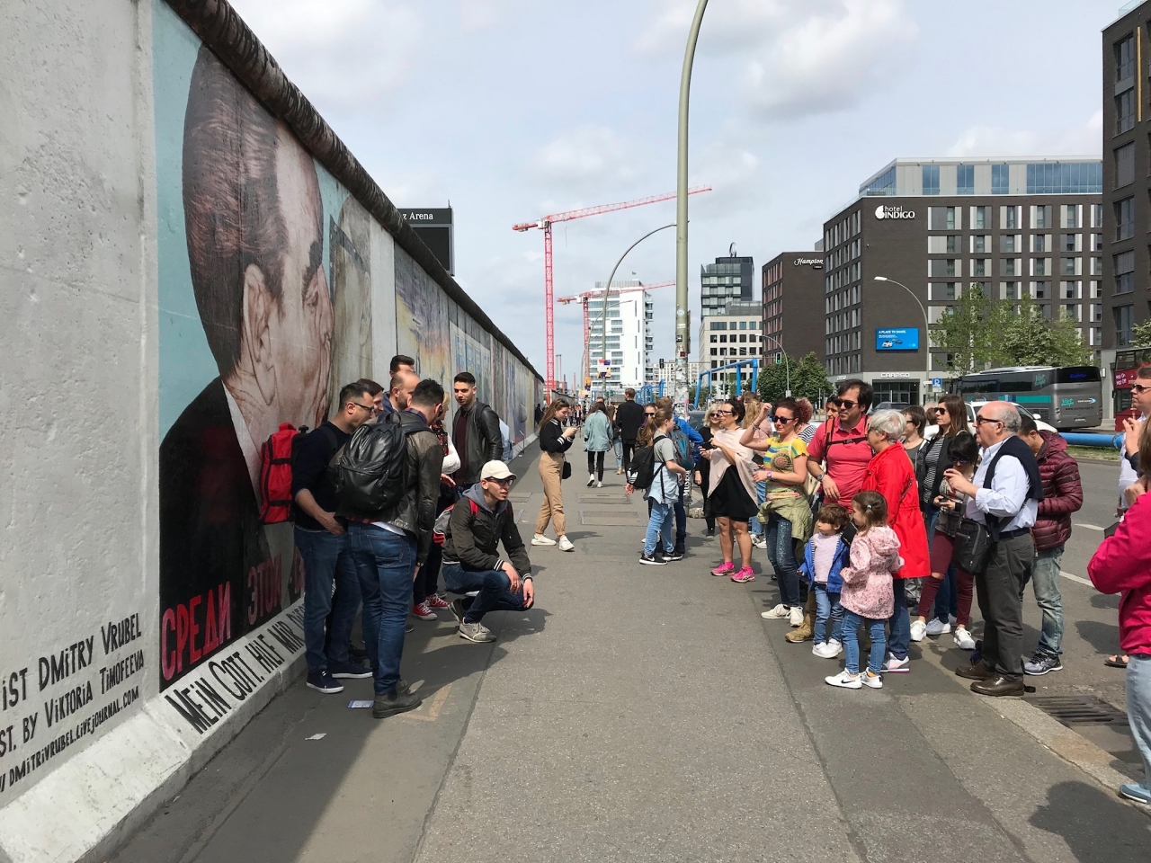 とりあえずベルリンに来たら見る価値はあります。東ドイツホーネッカー国家評議会議長とソビエト連邦最高指導者のプレジネフの熱い口づけを描いたこの絵は一番人気で、大勢の観光客が記念撮影していました。しかし、結構エグいね。