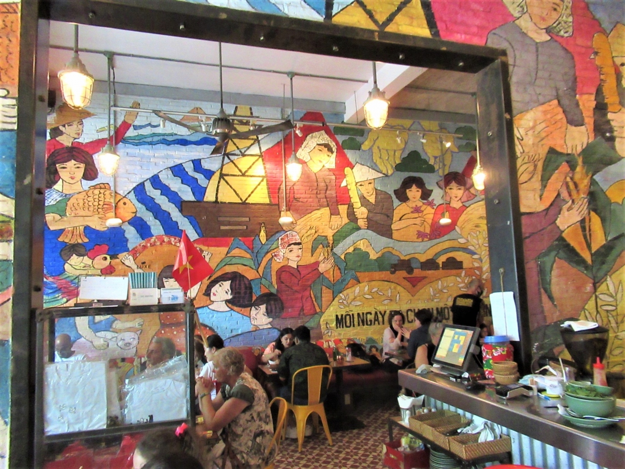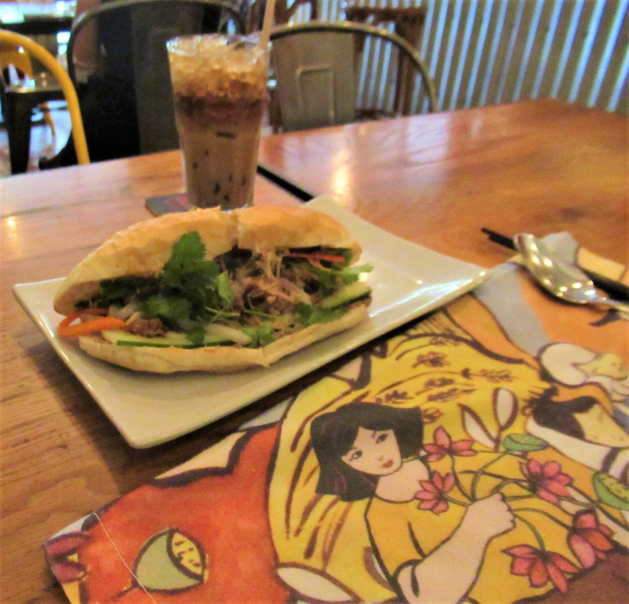 地元料理を提供する人気のレストランで、バインミーとベトナムコーヒーをいただきました。