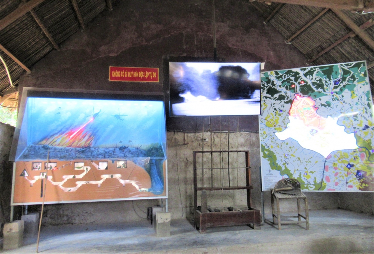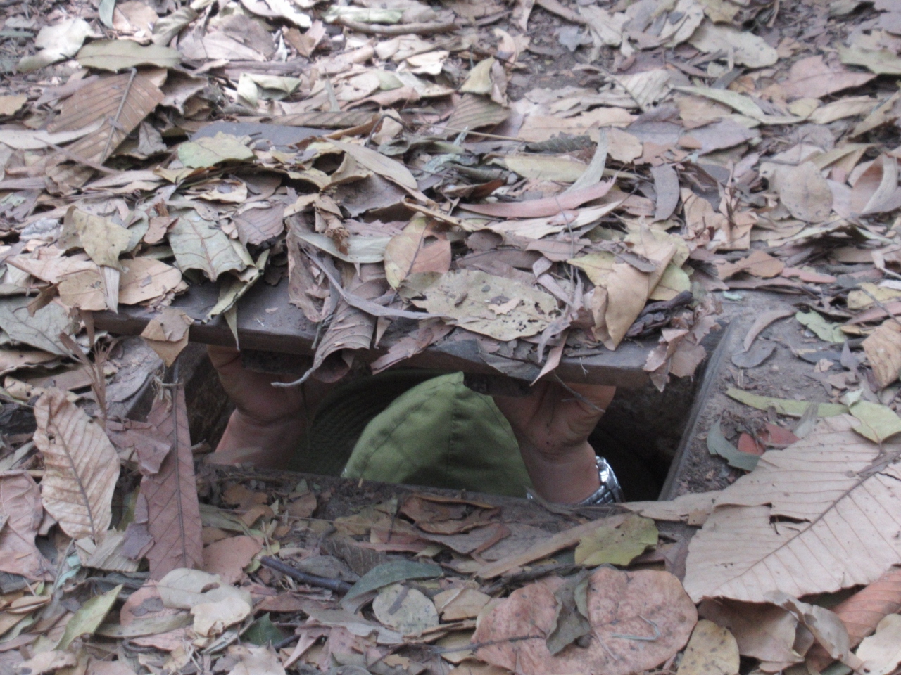 狭い穴に入り、ふたをかぶせて隠れる体験。このようにしてアメリカ兵から隠れたそうです。