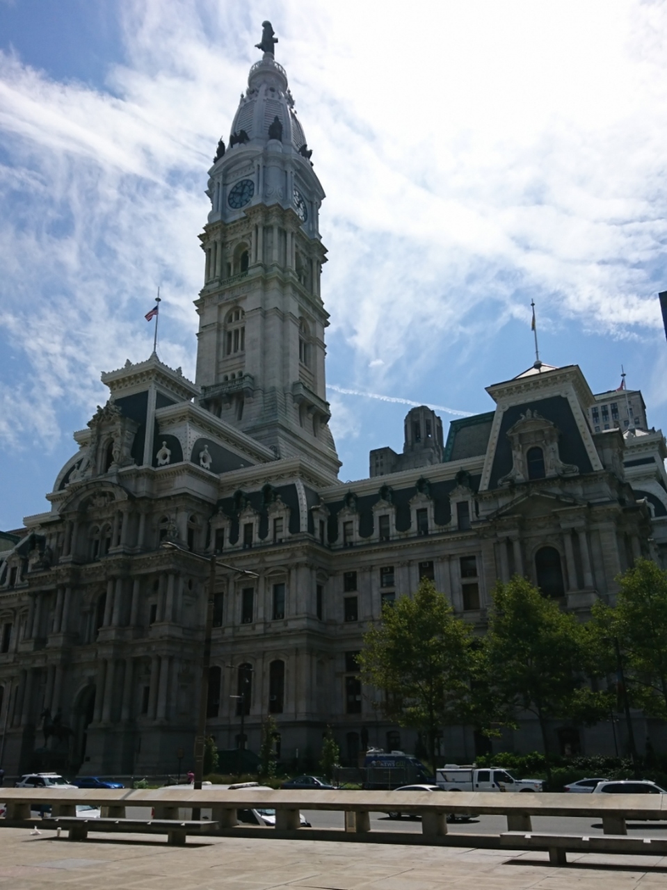 フィラデルフィアのランドマークになっている建物です。とても大きな建物で、堂々とした佇まいが素敵でした。中央に伸びている塔の頂上にはウィリアム・ペンの像がありますが、高さが11メートル、重さが27トンというかなり大きなものになっています。