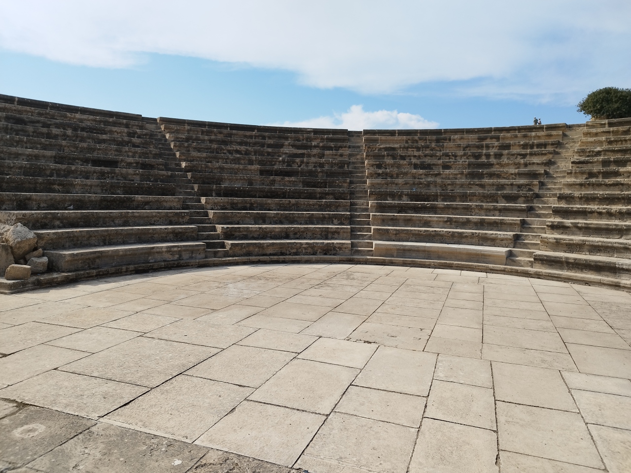 パフォスには個人旅行で行きました。オデオンは考古学公園の中にありました。考古学公園は広いので時間を多めに取っておいたほうが良いと思いました。たくさんのモザイクを見たあとに見たのでそんなに感動はしませんでした。