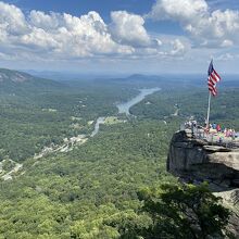 ノースカロライナ州ラザーフォード郡の村にある、高さ約100mの花崗岩の一枚岩です。駐車場まで車で行けば、残りは約500段の階段で絶景に出会えます。さらにもう少し上がると、ロックを含めたルーア湖とブロード川の絶景が待っています。ロックを下りたら終わりではなく、「ヒッコリー・ナット・フォールズ(HICKORY NUT FALLS)」という滝も見どころです。チムニー・ロック周辺は、1992年のアメリカ映画「ラスト・オブ・モヒカン」のロケ地にもなり、この滝の近くの崖がクライマックスの戦いのシーンで使われました。チムニー・ロックの麓はちょっとした観光村みたいになってますので、前後で村を楽しむのもありです。