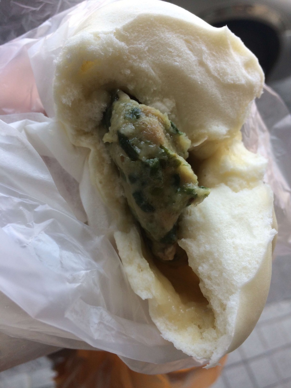 何人も並んでいました。でも、さっさとさばかれていくので、行列に並んだ時間は短かったです。2個食べただけでも、かなりおなかいっぱいになりました。2種類ともおいしかったです。座っては食べれませんが、コスパが高いと感じました。