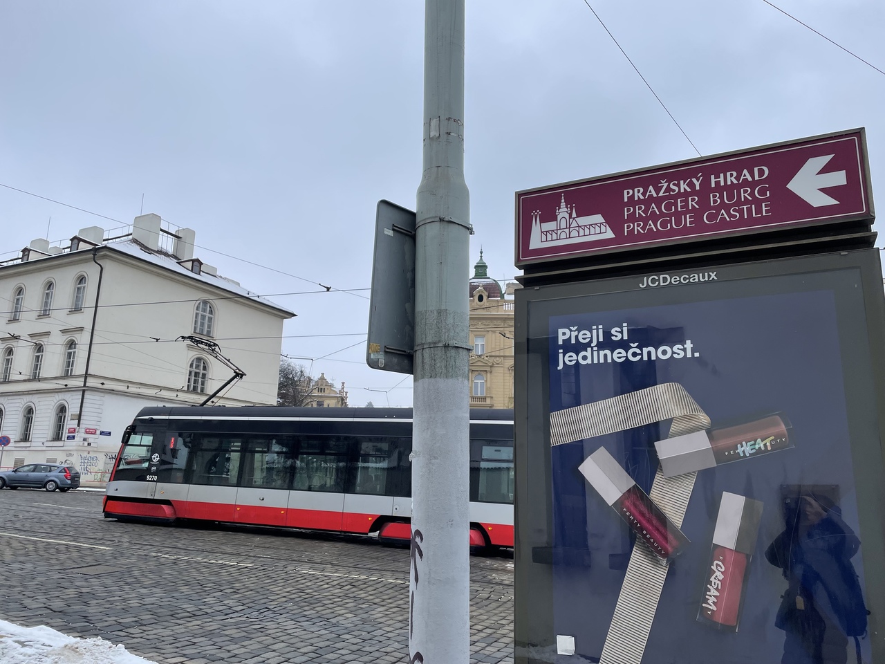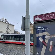 何駅かあるプラハ城へ行ける駅のうちの一つです。地下鉄乗り場と、トラムの駅の二つがあります。こちらで降りると、プラハ城へは階段を登って進むことになります。