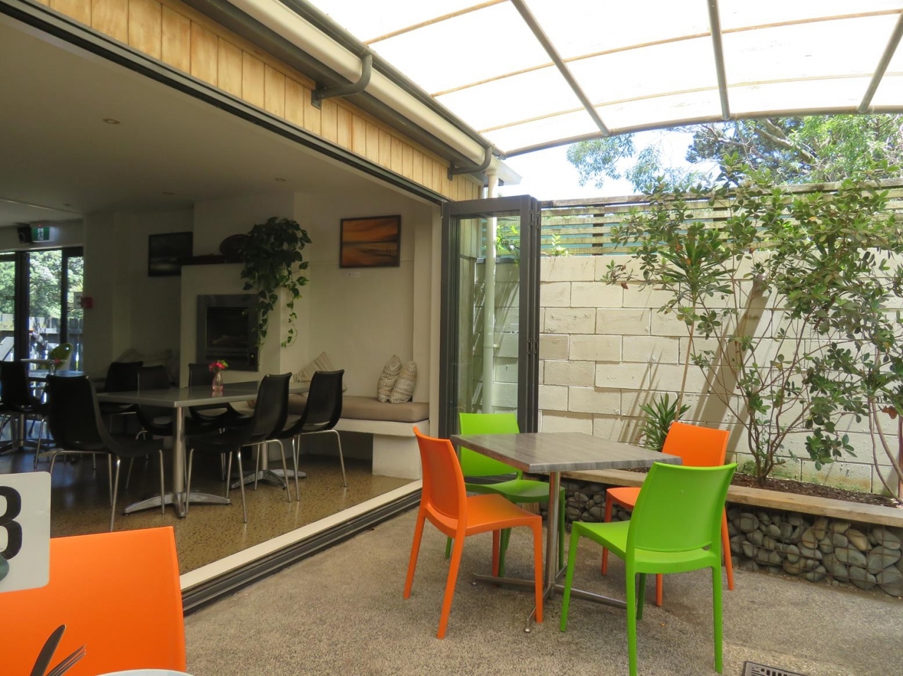 屋外席のほか、屋内席もあって一息付けます。