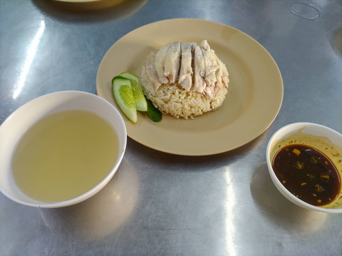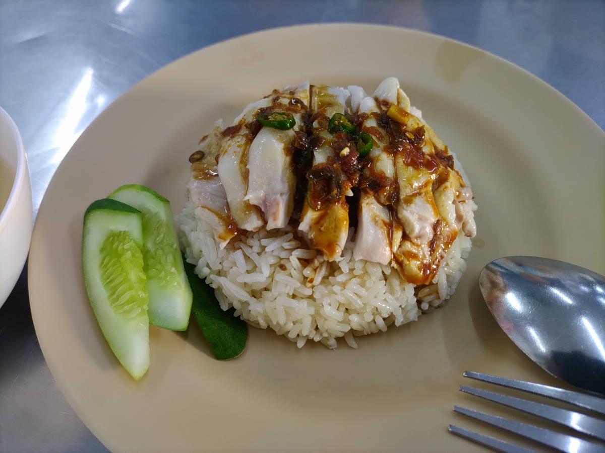 「プラ プロム(エラワン廟)」でこの先の旅の安全を祈願してから、「ラーン ガイトーン プラトゥーナム」に行きました。18時前とちょっと早めの時間だったせいか、支店ができたせいかお店は空いていました。「カオマンガイ」50バーツを注文しました。一皿25バーツの時代から通い続け、とうとう50バーツになってしまいましたが、ここのカオマンガイを食べると他のは受け付けないくらい美味しいので仕方ないです。タレをかけてあっという間に完食しました。