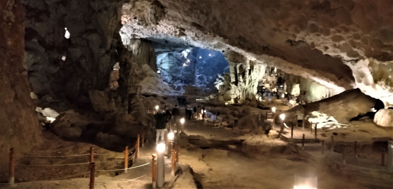 ベトナムの北部ハロン湾にある巨大な鍾乳洞で、ハロン湾クルーズに組み込まれていて入場料はクルーズ参加者に配られる共通パスに含まれている。急な階段を昇り降りするのが年配者にはきついかもしれない。内部は息をのむ壮大な景色。