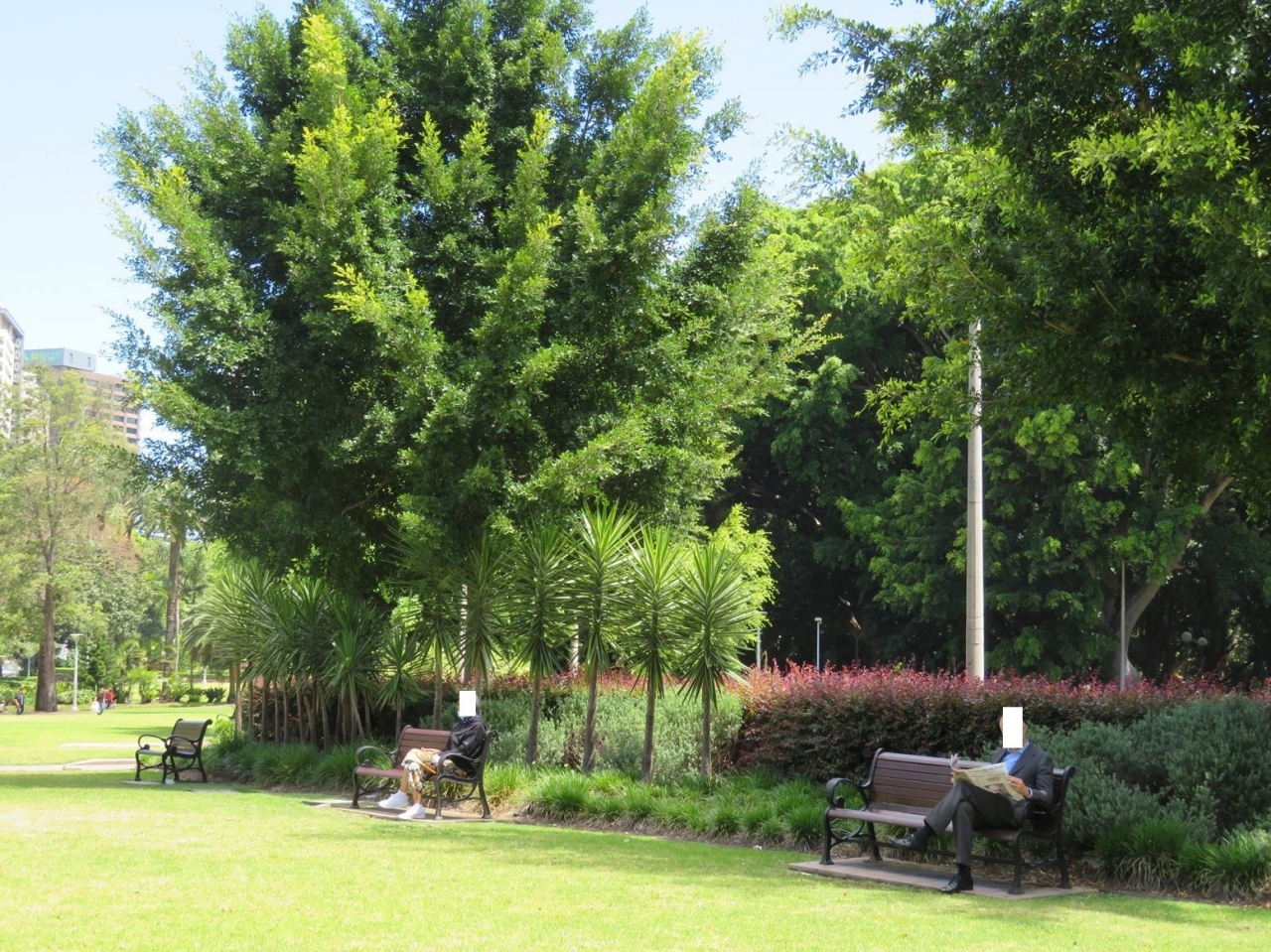 木々や植栽が多く、今回11月下旬には新緑のトンネルを散策や通り抜けで行きかう人、日当たりのいい芝生に寝転んでまどろむ人、ベンチでのんびり新聞を読む人が見られ、シドニー市民の憩いの場になっているのが感じ取れました。