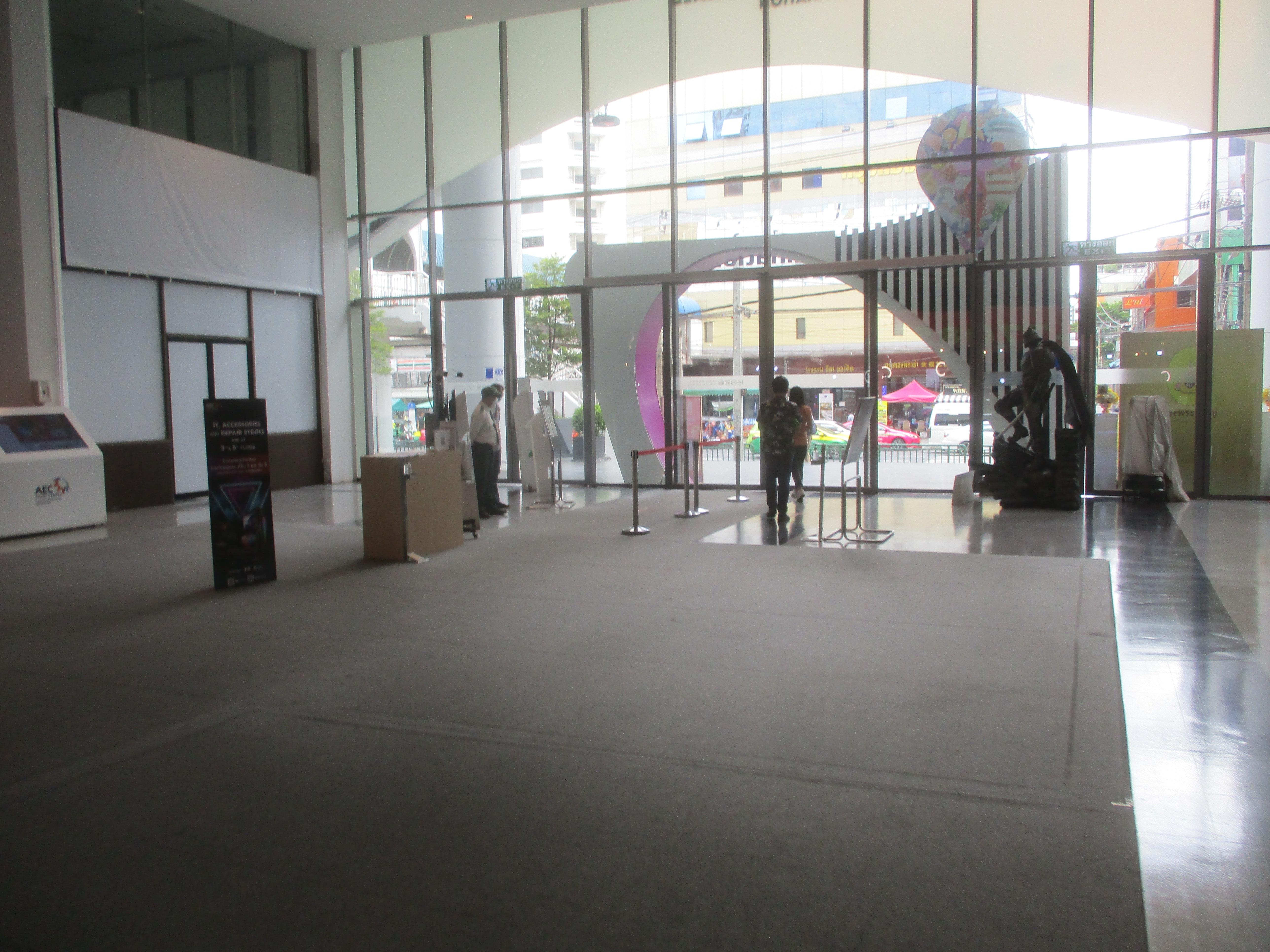 パンティップ プラザに入る際、入店する扉と退店する扉が異なっていました。入店すると、マスクを着用しているかチェックするセンサーと、瞬時に体温を検査する機能が付いている機械が設置されていました。この辺は、日本のショップと同じであると感じました。