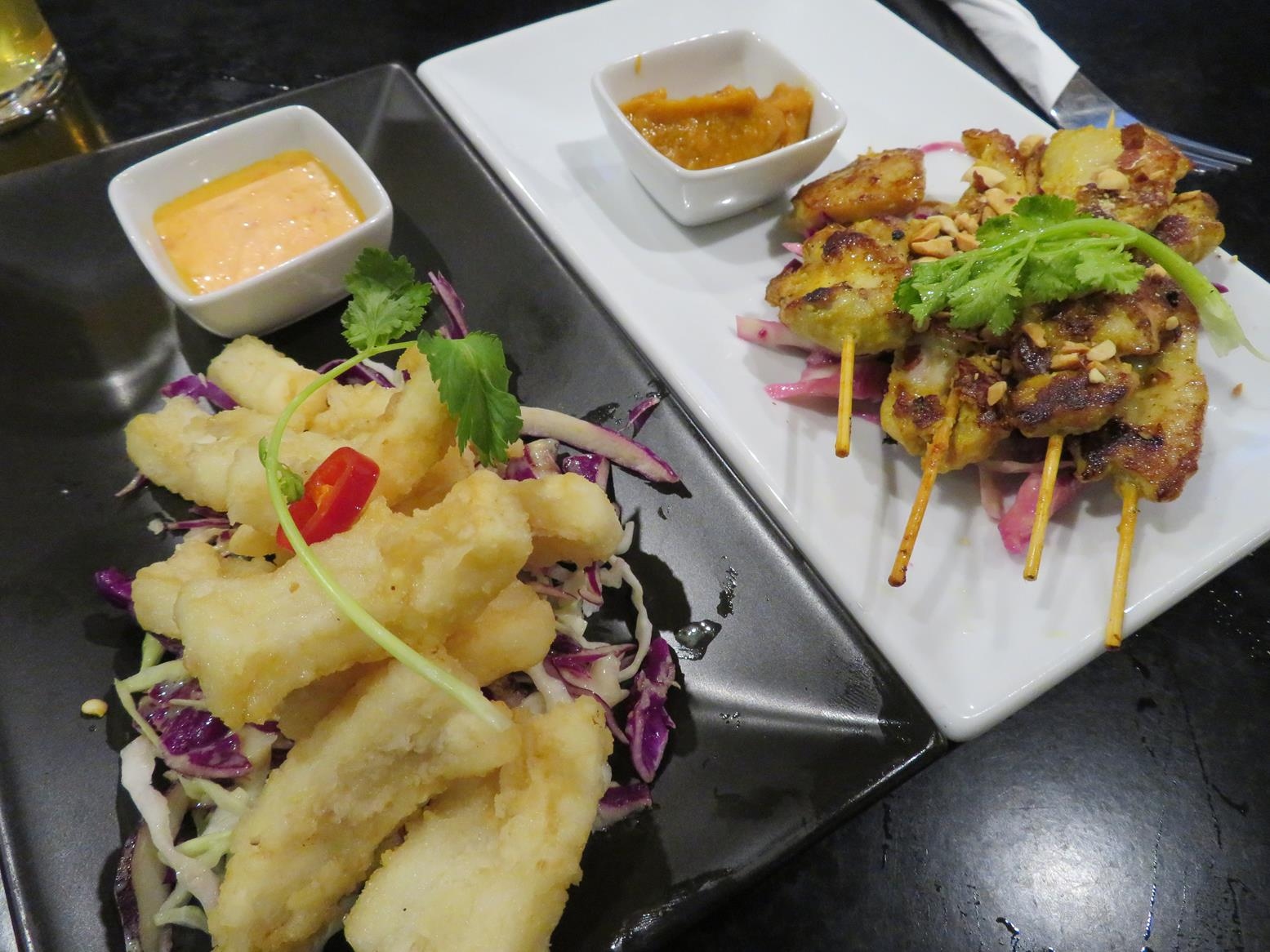 前菜に頼んだイカのフリッターや鶏肉のサテーは見た目もソースを含む味付けも「お!」と思うほどよくて感激!