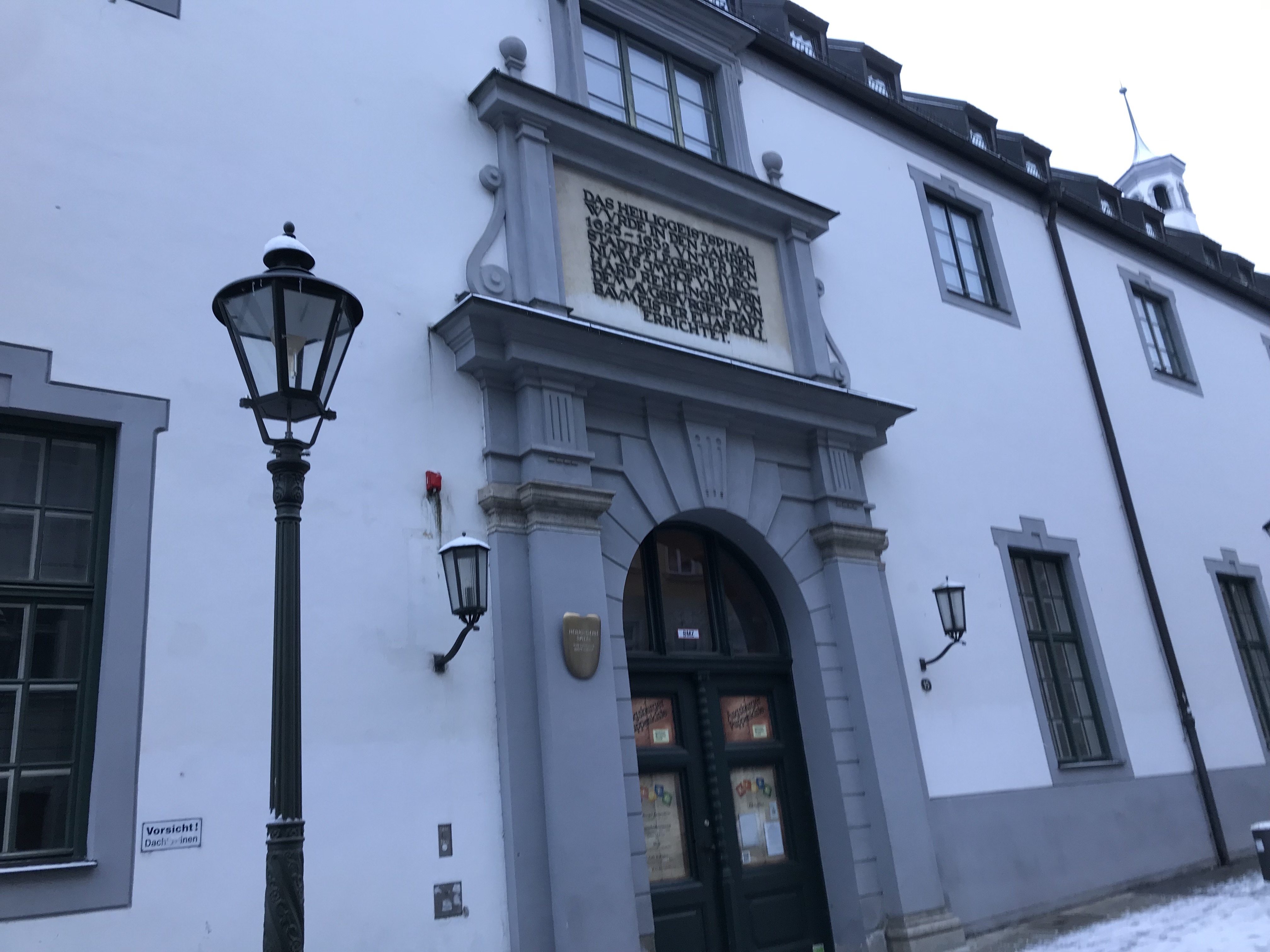 ドイツでは知らない者はいないというほど有名な人形劇の劇場です。アウクスブルクの目抜き通りのマキシミリアン通りの突き当りのウルリヒ教会から左側の坂を下って行き、1回右に曲がります。午前と午後に人形劇の実演があるのですが、時間が合わず見ることができませんでした。