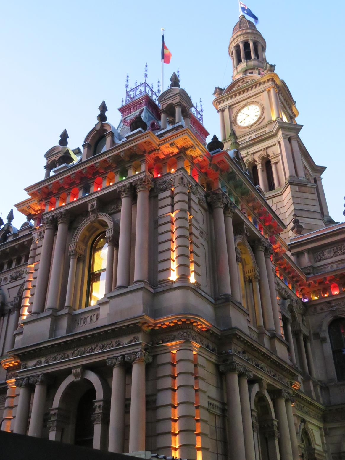 1889年に建てられたシドニーのタウン・ホールは、55mの高さの時計台を持つビクトリア様式の石造り。