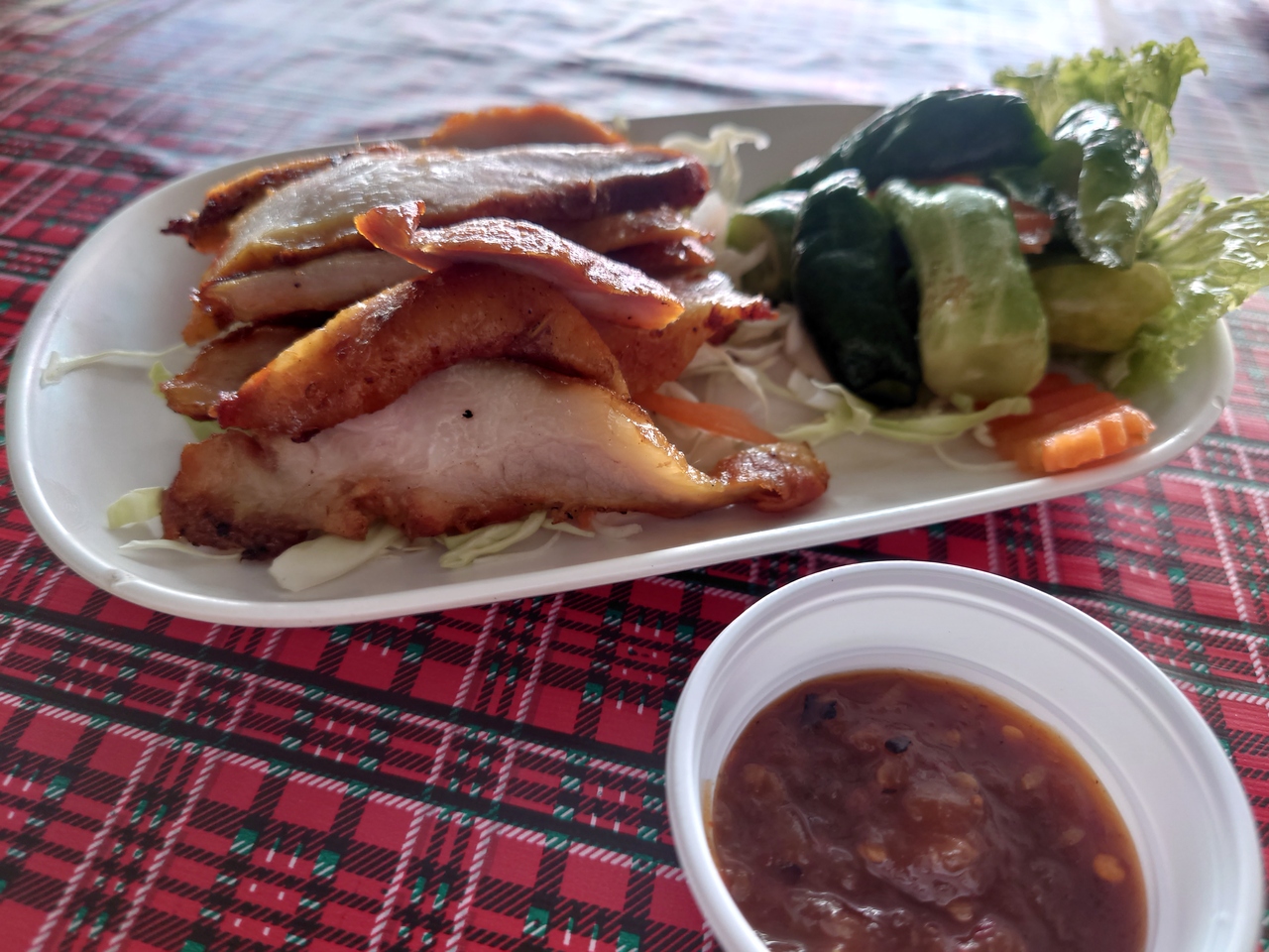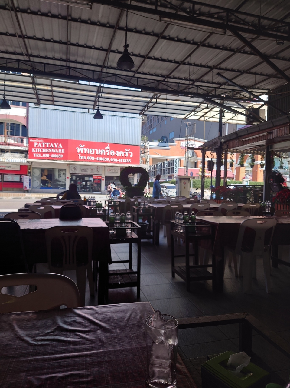 パタヤカン沿いでハーバーモールの前で隣にはスープで有名のカオマンガイ屋もある。