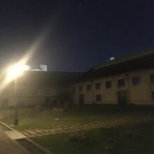 町興しでリノベーションされた建物群です。古いコンクリートの建物が結構ありましたが、植物も植えられていて、駅近くというか線路の後ろで駅の隣なんですが、落ち着いた雰囲気でした。夜にフェアの準備がされていました。
