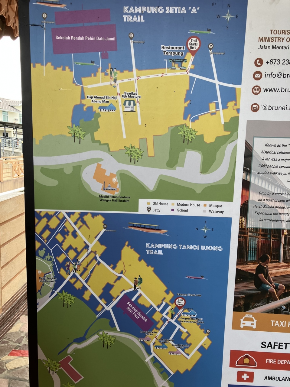 対岸の市内からボートで1分ほど。1人1ブルネイドル。集落内は閑散としておりますが、日本ではなかなか見れない光景が広がっております。所々足元が不安定な箇所があったので、気をつけて歩いた方がいいです。新興住宅エリアは立派な家が並んでいました。