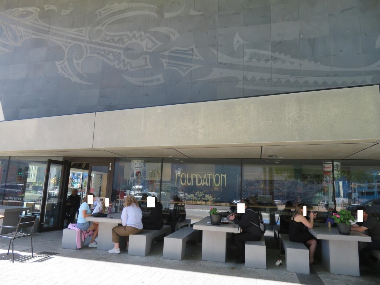 2011年の地震では、大聖堂以外にも周辺の建物が多数崩壊しましたが、今回2022年11月に訪れてみたところ、広場北側には新しく中央図書館が出来ており、その一階にファンデーション・カフェも入っていました。