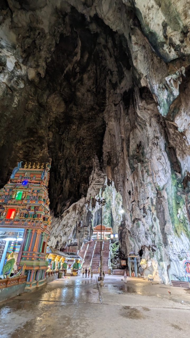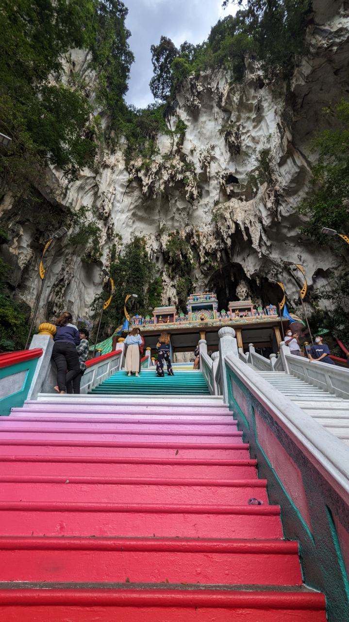 カラフルなすごい傾斜のある階段を登り、洞窟へ。夏ならひんやり気持ちよさそう。寺院に特に興味があるわけではないのでサラッとみて終わりでしたが、一風変わった寺院で、少し時間が出来たので行って見ました。