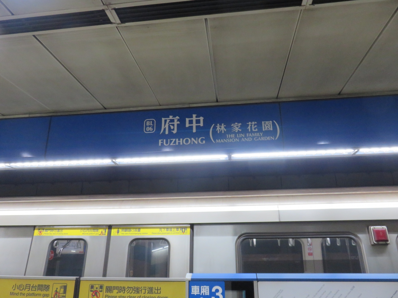 林家庭園観光の最寄り駅になると思います。台湾新北市板橋区にある、台北捷運板南線の駅で、駅名は所在地の街道名“府中路”から命名されたようで、地元議員の建言により、林家花園という副駅名が付けられていました。