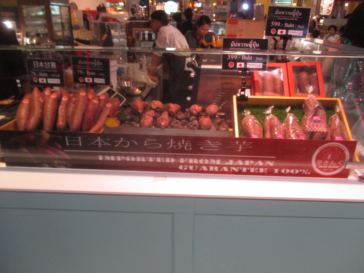 日本のスーパーマーケットと同様、日本から輸入されたと思われる焼き芋の販売を行っていました。日本のスーパーではあと数か月先と思われますが、季節感のないタイでは秋の味覚が解禁されていました。焼き芋が人気のようで、バンコク滞在中、他のスーパーでも焼き芋の販売を見かけました。