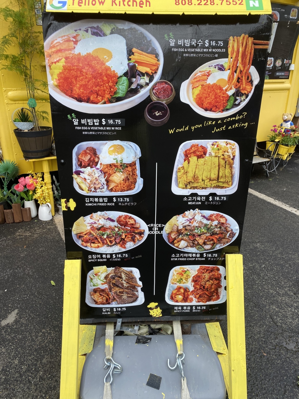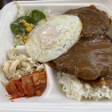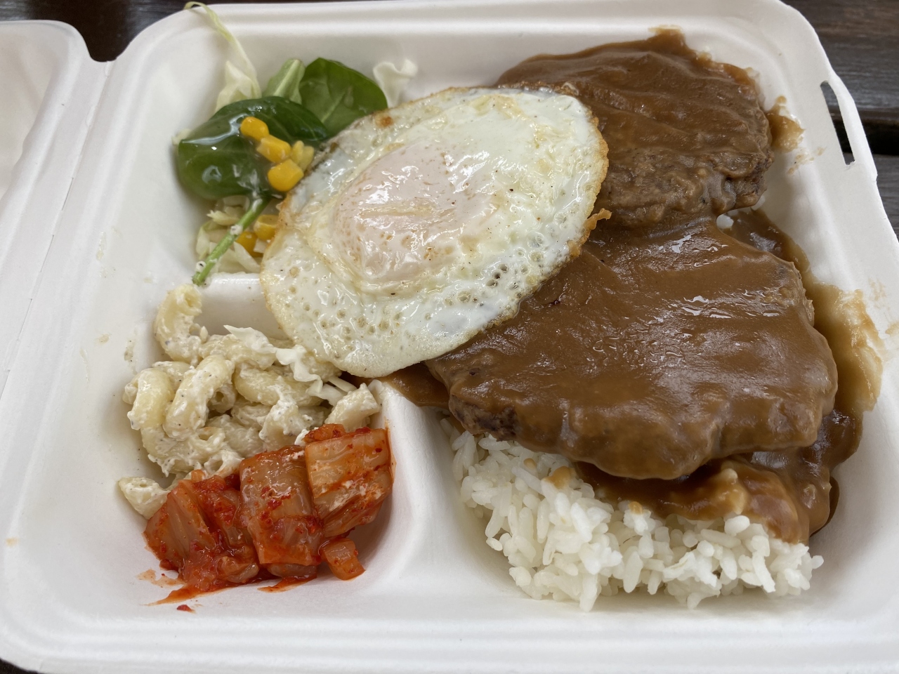 以前から気になっていたコリアンフードのフードワゴンで初めてランチを購入しました。子供は辛いのがあまり得意ではないのでロコモコにしました。子供曰く、写真ではトッピングにキムチが入っていなかったのでそれにしたとのことでしたが、残念ながらキムチ入り。写真はあてにならないかも。味はロコモコだけに特別美味しいという訳ではなかったようですが、ボリューム的には満足とのことです。