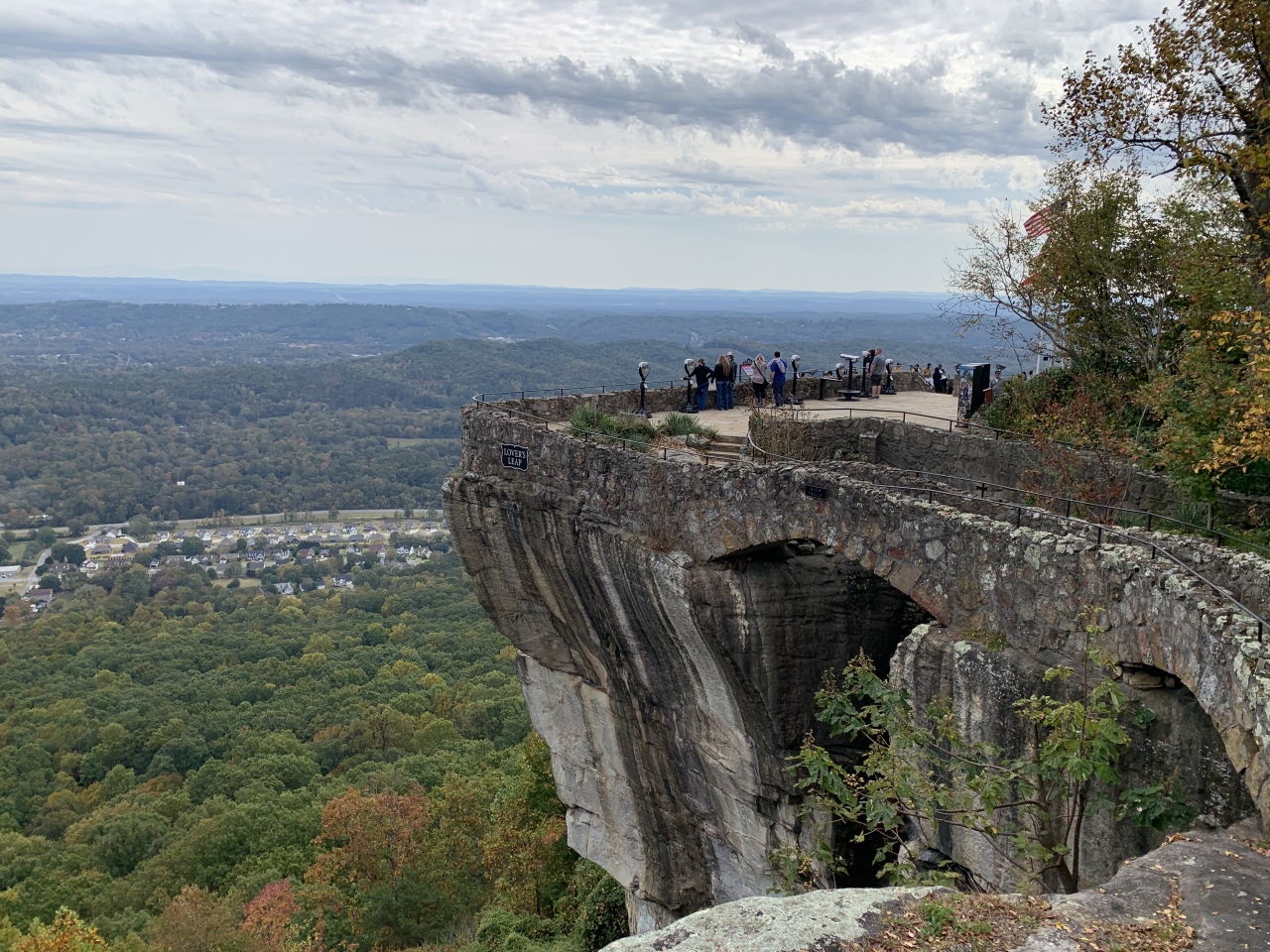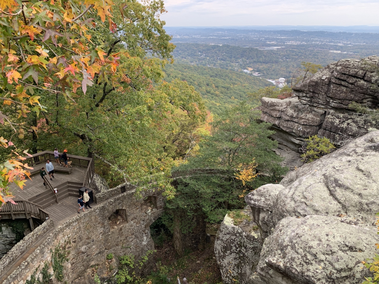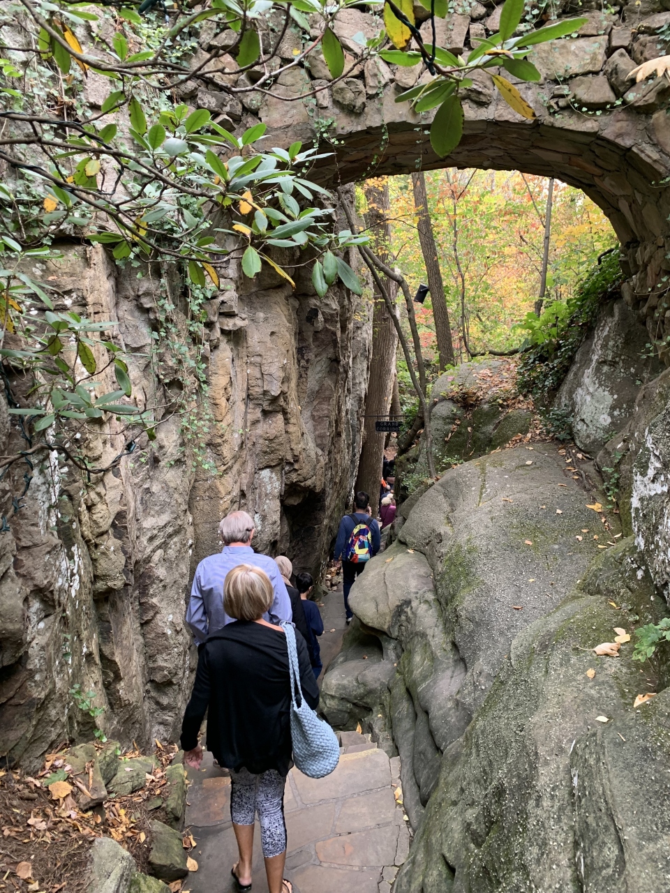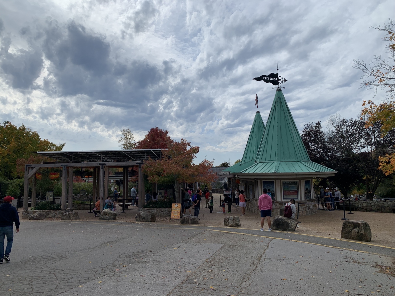 チケットは事前に公式Webサイトで予約しておきました。時間制です。ロック・シティーはジョージア州で東部時間なので、中部時間のテネシー州より1時間進んでます。テネシー州側から行く場合は時間に注意が必要です。ロック・シティ・ガーデンズは、1932年開業の歴史ある公園です。地元の住民であるガーネット&フリーダ・カーターというお金持ちの夫婦が、ロックアウト・マウンテンの一部を買い取り、岩の地形を生かしたトレイルコースとおとぎ話のテーマパークを造りました。これが中々凄いんです。自然の地形を生かした立体的なコース。子供はこういうの大好きですね。ロックが織りなす見どころを巧みにルーティングしていて、大人でも少しワクワクします。「シー・セブン・ステイツ」という展望エリア、ここから7つの州を見渡せます。