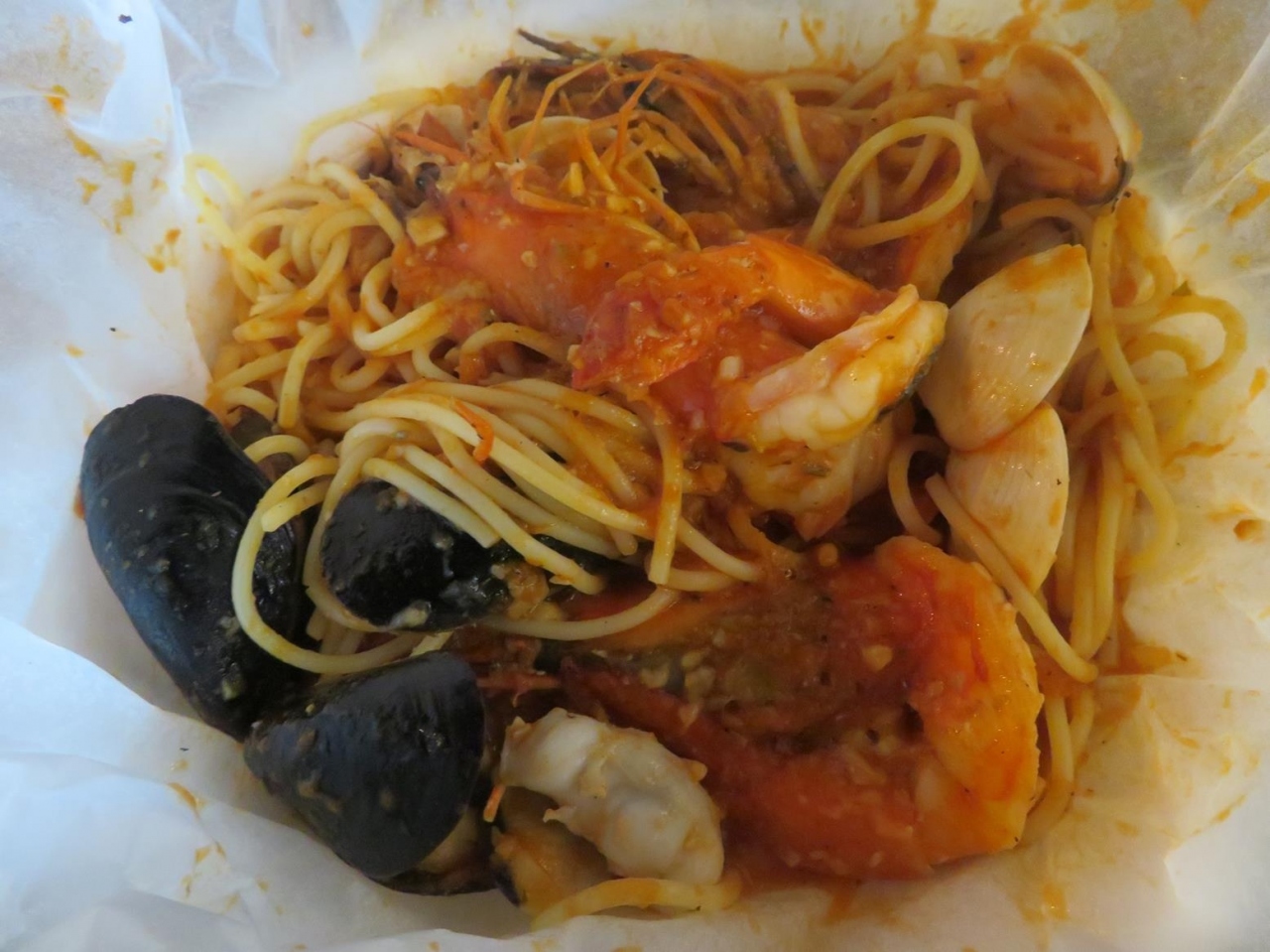 パスタの内、Marinara Cartoccioはトマト風味のシーフード・パスタで、仕上げに全体を紙に包んで炙ってあるのが珍しい趣向。