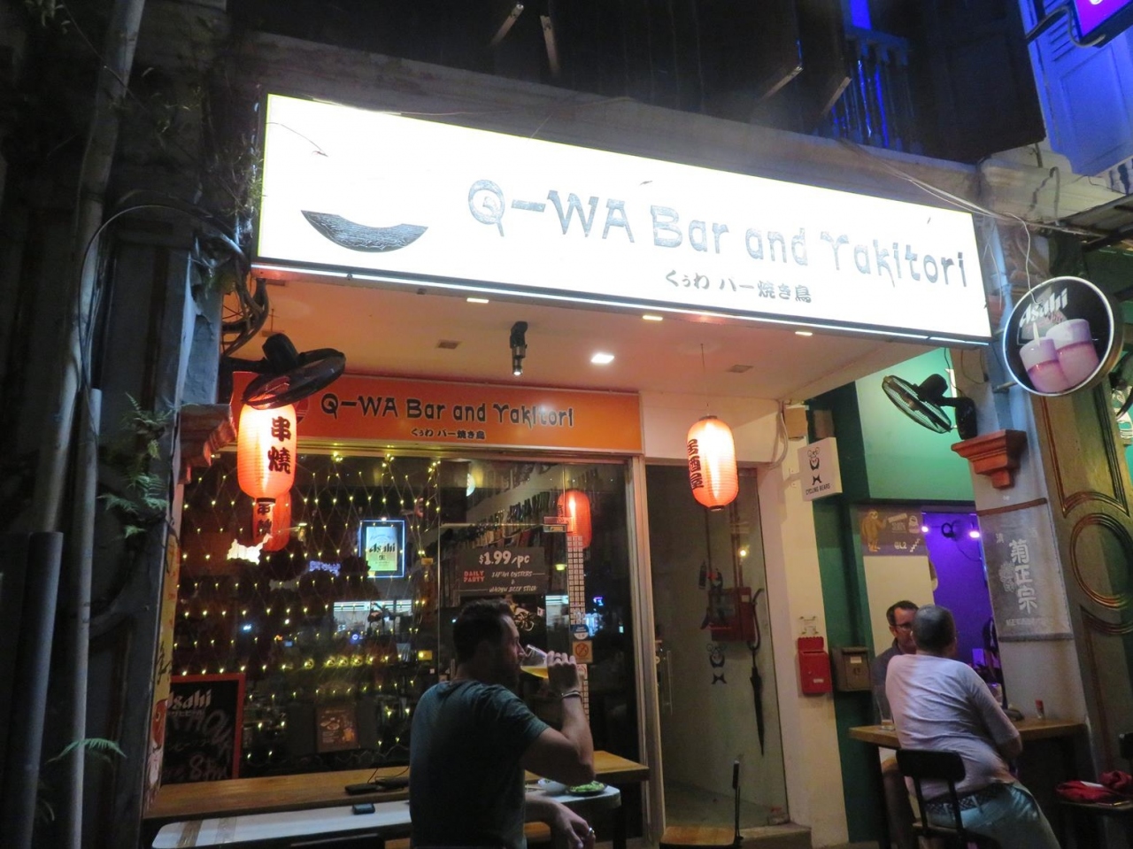 カトン地区を東西に貫くイースト・コースト・ロード沿いには、国際色豊かな小規模の飲食店がどんどん増えていて、この≪Q-WA バー&やきとり≫もそんなお店の一つ。