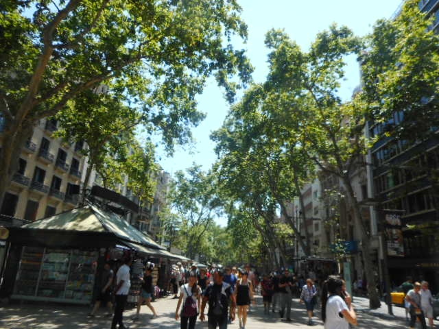 バルセロナの中心部を貫くランブラス通りは両脇に並木道が続く賑やか通りでした。グルメの市場や露店も並び、食べ歩きも楽しめて、大勢の買い物客で混雑していました。近くに在るボケリア市場は市民の台所で、生鮮食品やフルーツショップ、スイーツと所狭しと店舗が並んでいました。