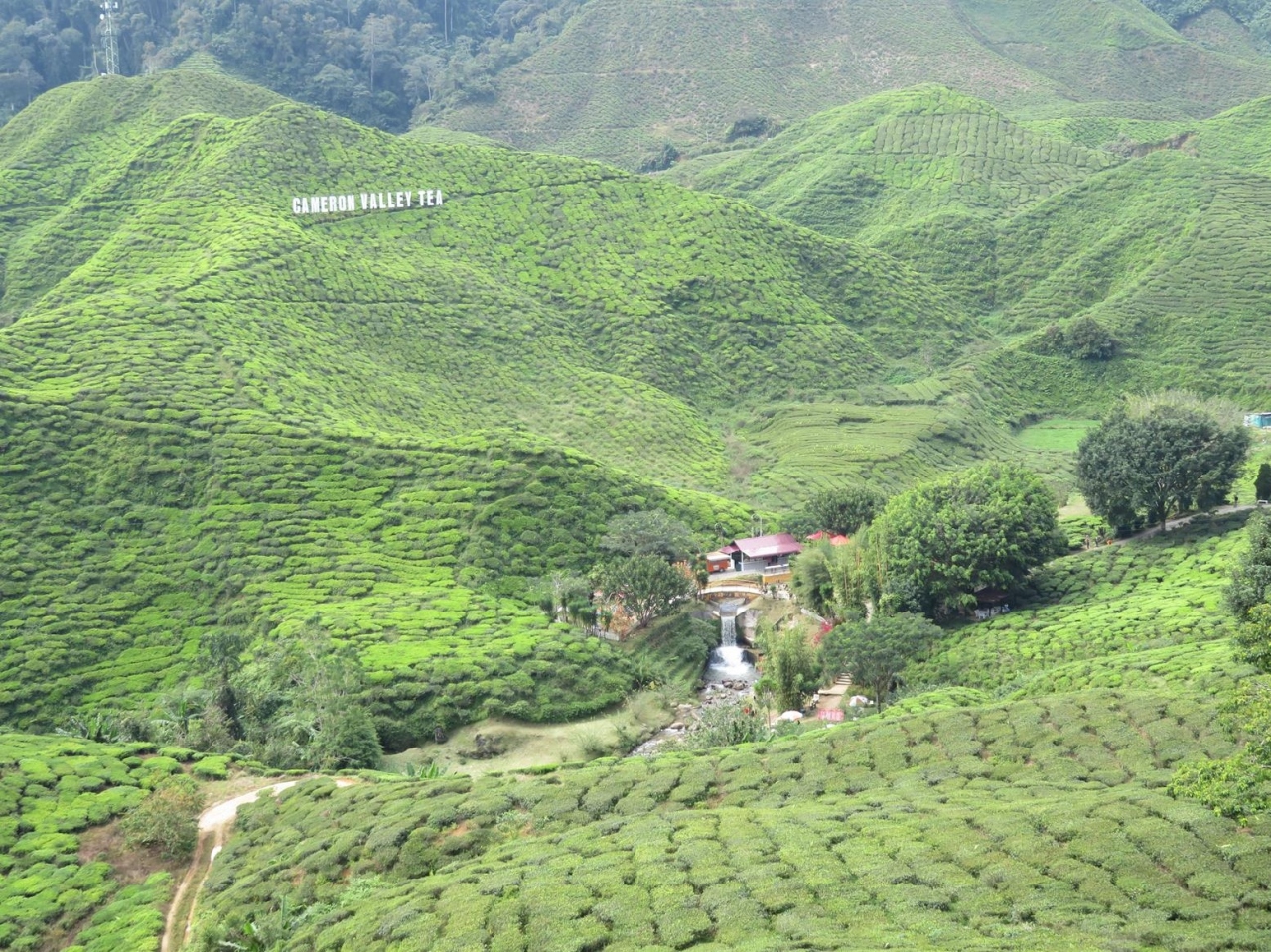 上記のプランテーションの紅茶のブランド名はキャメロン・バレー・ティーで、ティー・ハウスから見える谷向こうの茶畑にもCAMERON VALLEY TEAの文字が見えます。