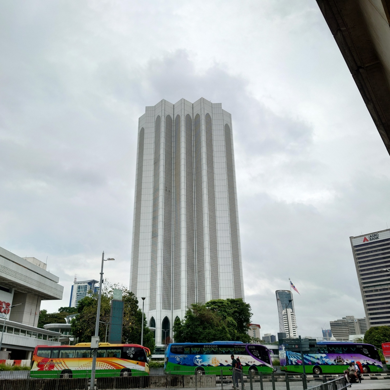 セントラルマーケット近くのパサール・スニ駅から見上げることのできる、角の多い白いビルです。なかなか日本では見かけることのない形で、イスラミックな模様のデザインが面白いです。下の階はショッピングモールになっているようでした。