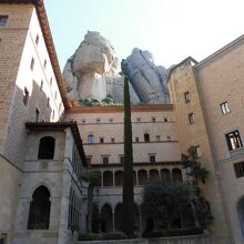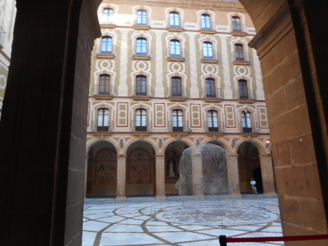 黒いマリア像が奉れている聖堂です。ベネディクト派の守る守護聖人の黒いマリア像を見学するのに早朝に入堂できました。パワースポットだそうで、修道院の中庭は修道院を背にポーズを取る撮影スポットと聞いてので、皆で記念撮影をしました。