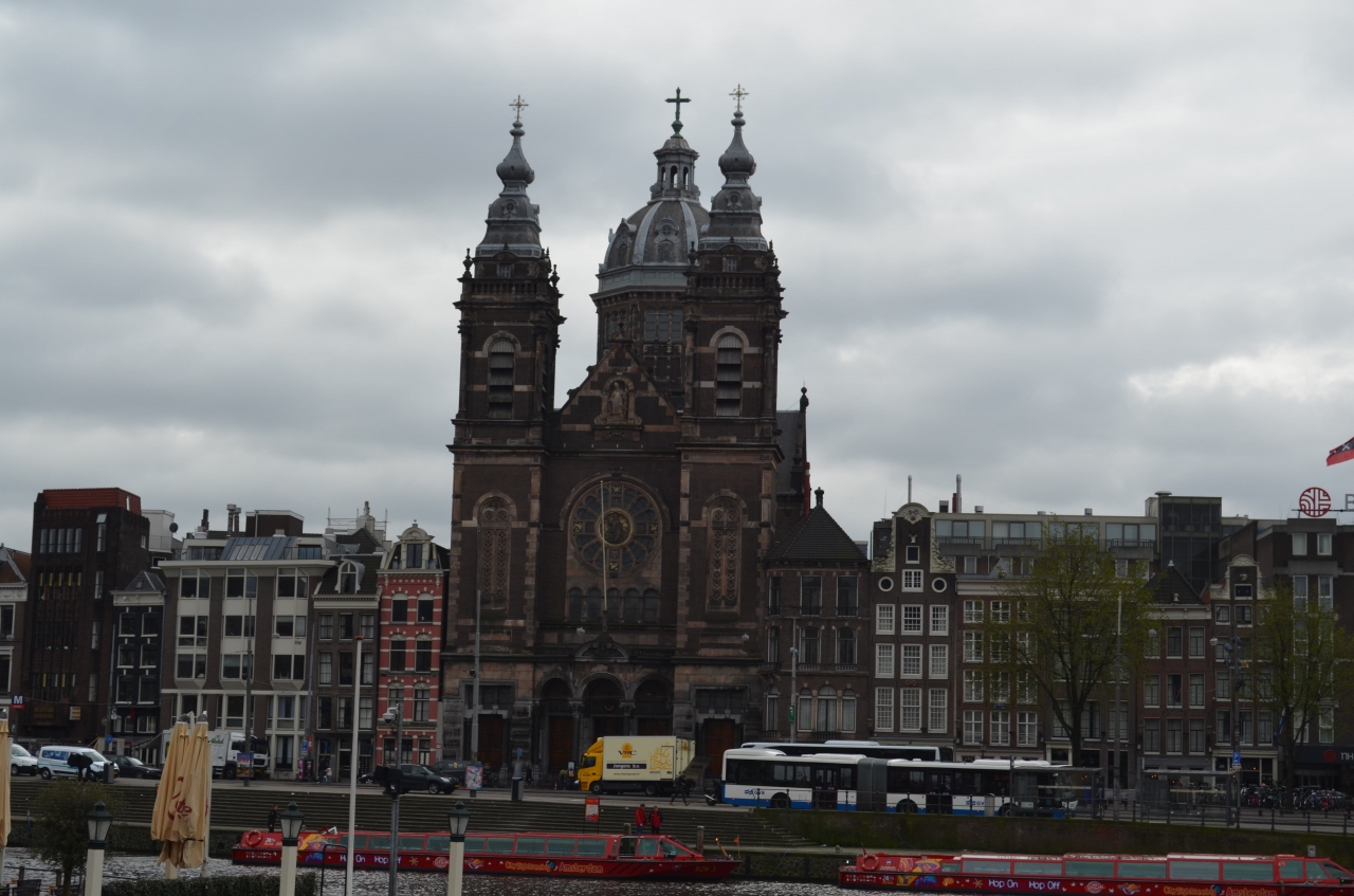 アムステルダム中央駅のすぐ近くに、旧教会があります。旧市街は運河が入り組んでいて高層建築がないためか、教会の尖塔が目立ちます。新教会と呼ばれる教会も近くにあります。中央駅からダム広場にかけて、いかにもオランダらしい風景です。