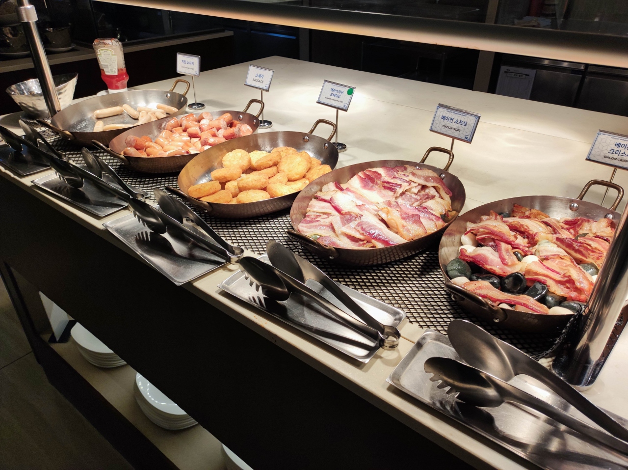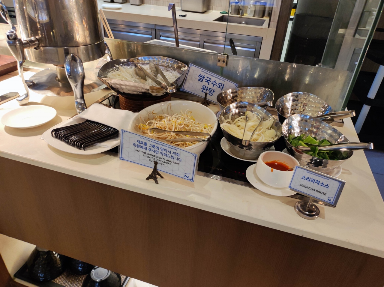 ノボテルアンバサダースウォンに宿泊した際、朝食で利用しました。朝食はビュッフェスタイル。種類は豊富で、韓国料理が提供されていました。他には、日本人用なのか、たこ焼きがあります。ホットミール、ヌードル(フォー)など、朝から充実した食事ができました。レストラン内は広いです。平日ということもあり、空いていました。