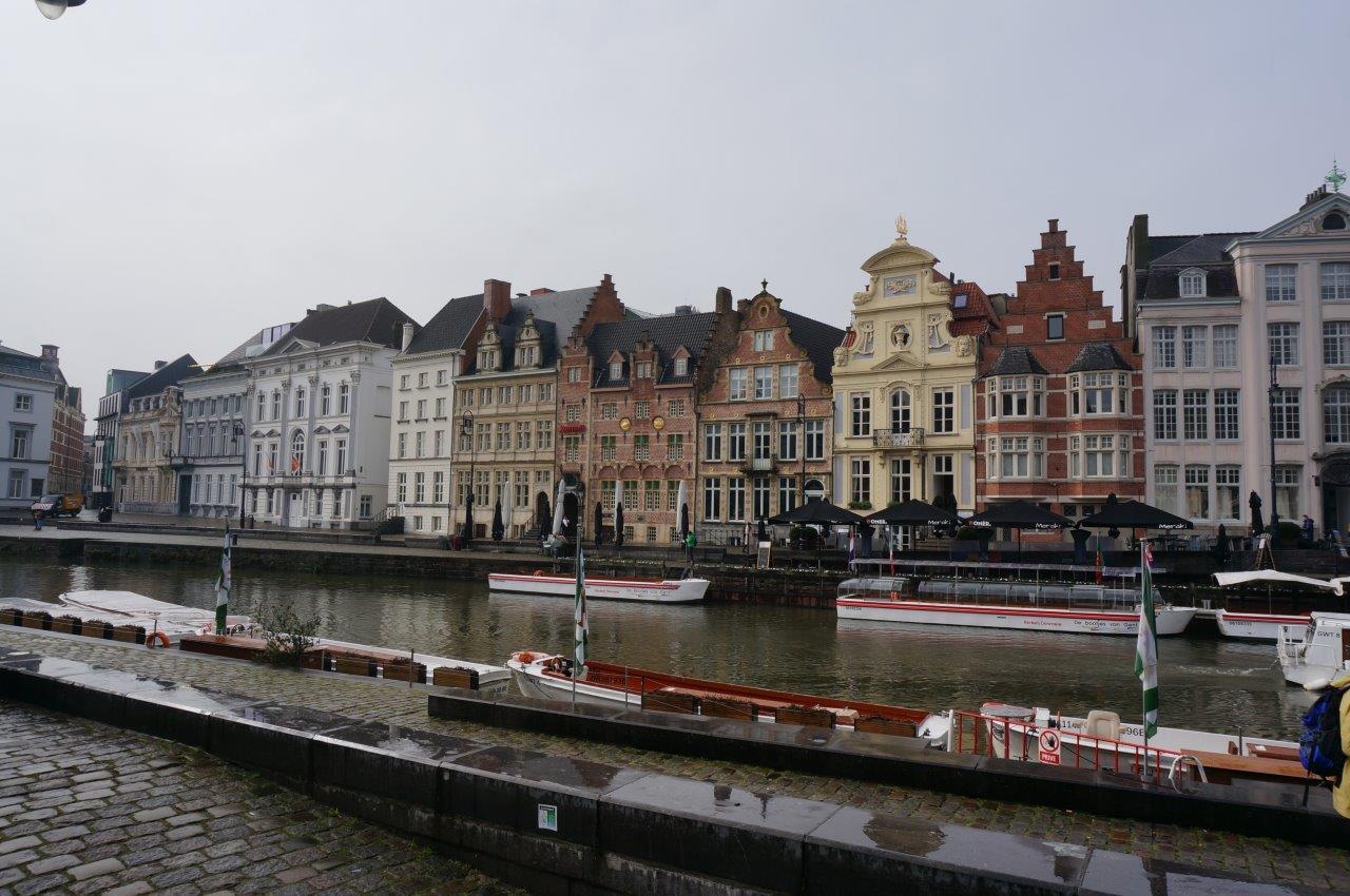 グラスレイの対岸、ギルドハウスが並ぶエリアです。レイエ川には船が多く停泊していますが、うまくマッチしていて景観を楽しむことが出来ます。規模は違えど、コペンハーゲンのニューハウンに似た雰囲気がありました。
