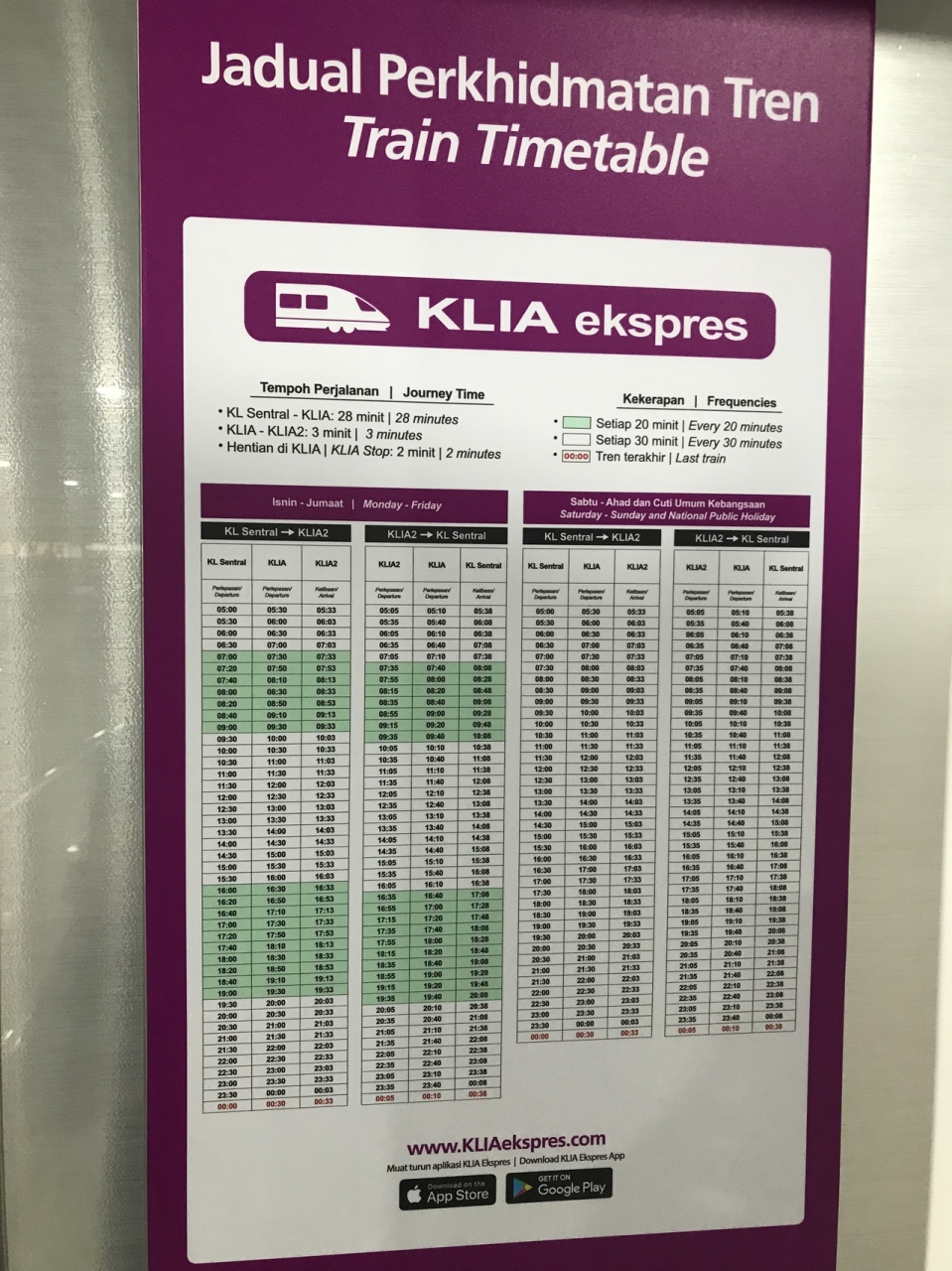 KLIA~KLセントラル間を28分ノンストップで結びます。KLIA2へはプラス5分です。時間は正確でした。