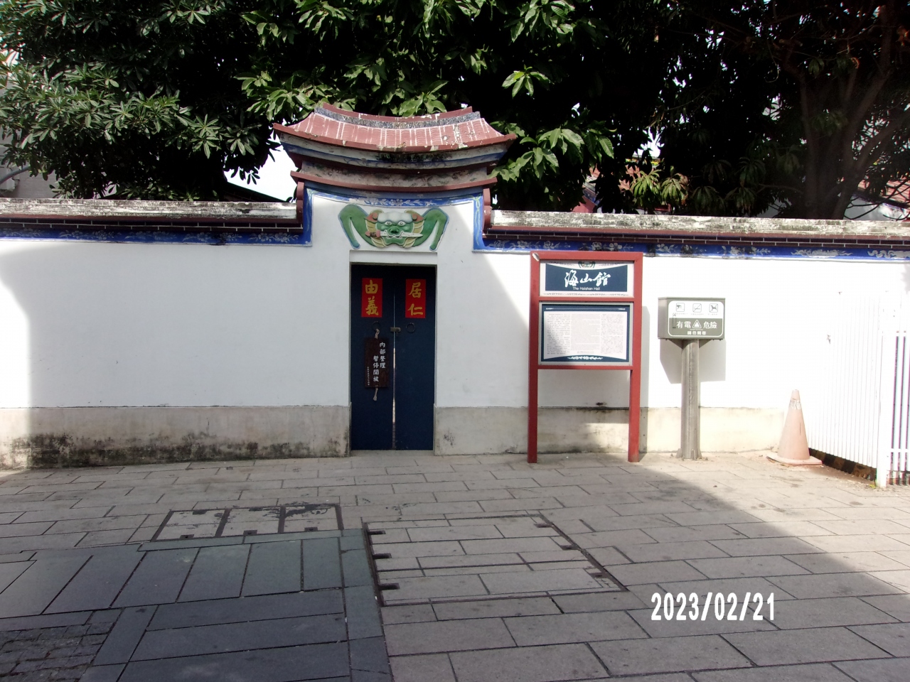 この海山館な延平老街の中にあります。狭い小路がある中にあります。この建物は5つあったなこの一つです。あとの4つはなくなっています。この建物の入り口には魔除けが彫刻されています。剣を口にくわえた劍獅と言われています。入り口は閉まっていて入れませんでした。