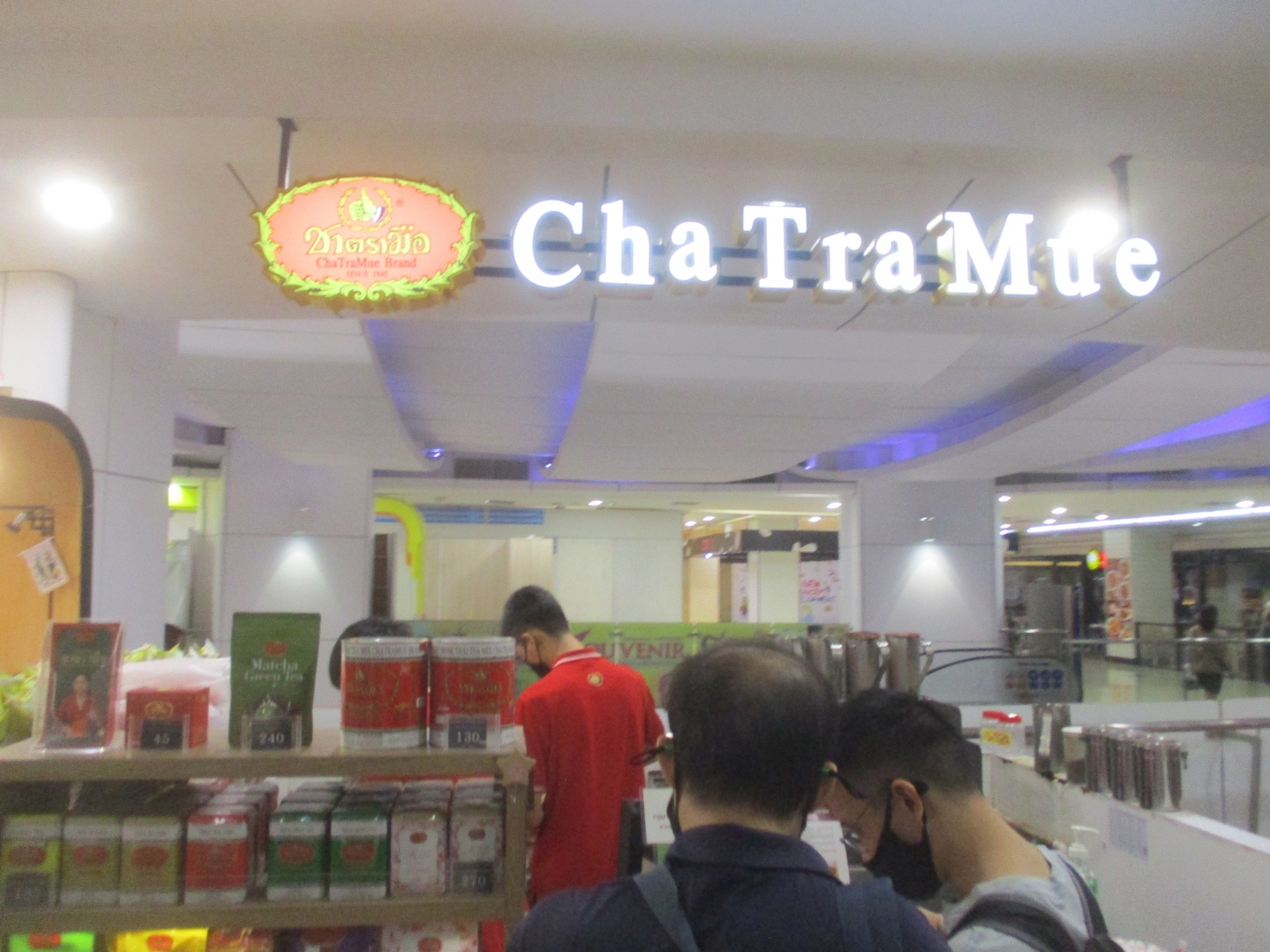 親指印のタイティー、チャトラムーです。スーパーやBTSの駅でも購入可能です。最近はショッピングセンターに多く進出しており、プラチナムファッションモール6階のフードコートにもありました。大体、お店の前に1人お客さんがいてタイの地元の方にも愛されていることが分かりました。