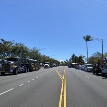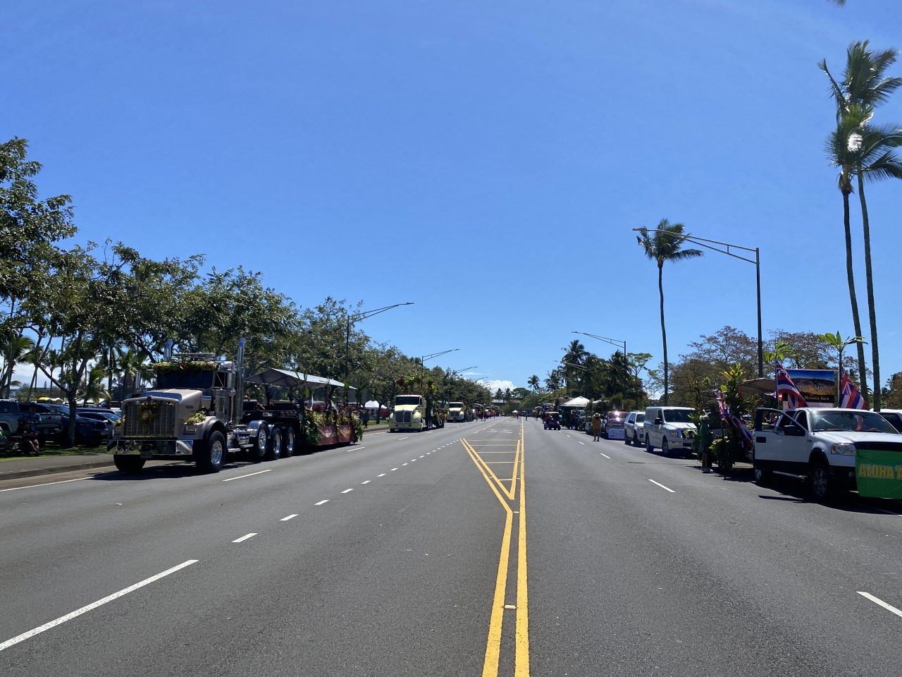 フラの祭典メリーモナークフェスティバルパレードが行われる日はパレードが終わるまで通行止めになります。
