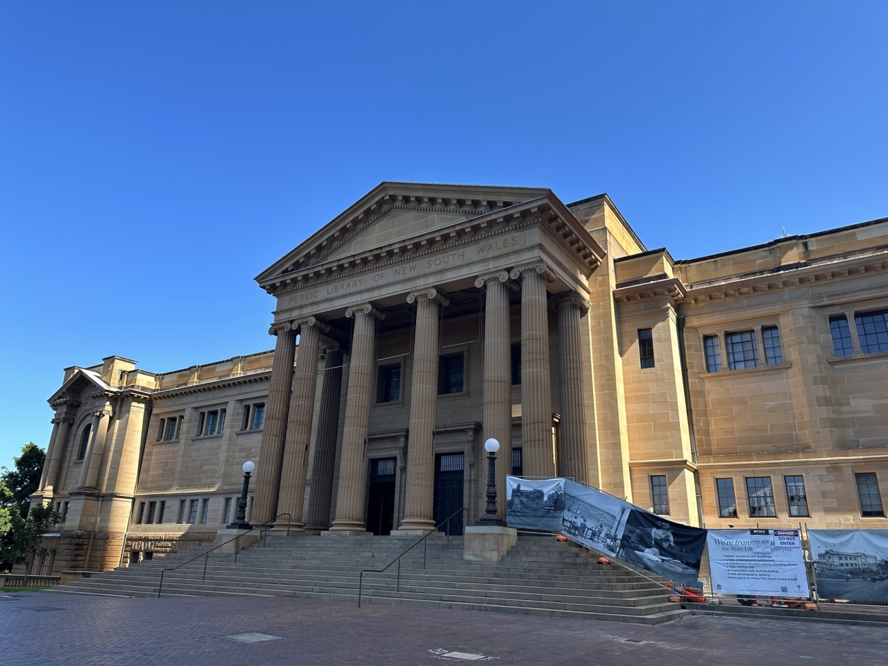 ロイヤル植物園の南側、ドメインの西に隣接したところにあるギリシャ神殿のような建物が、州立図書館です。1826年に設立されトーストラリア最古の図書館です。館内にはシェイクスピアルームがあり(週に1回の公開)、シェークスピアの多数の書籍でされています。