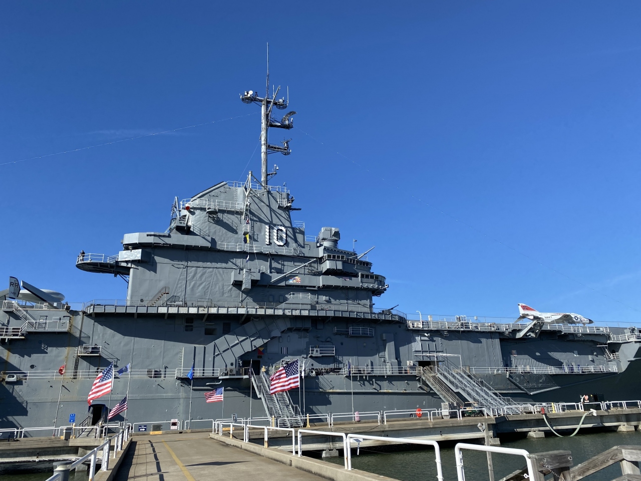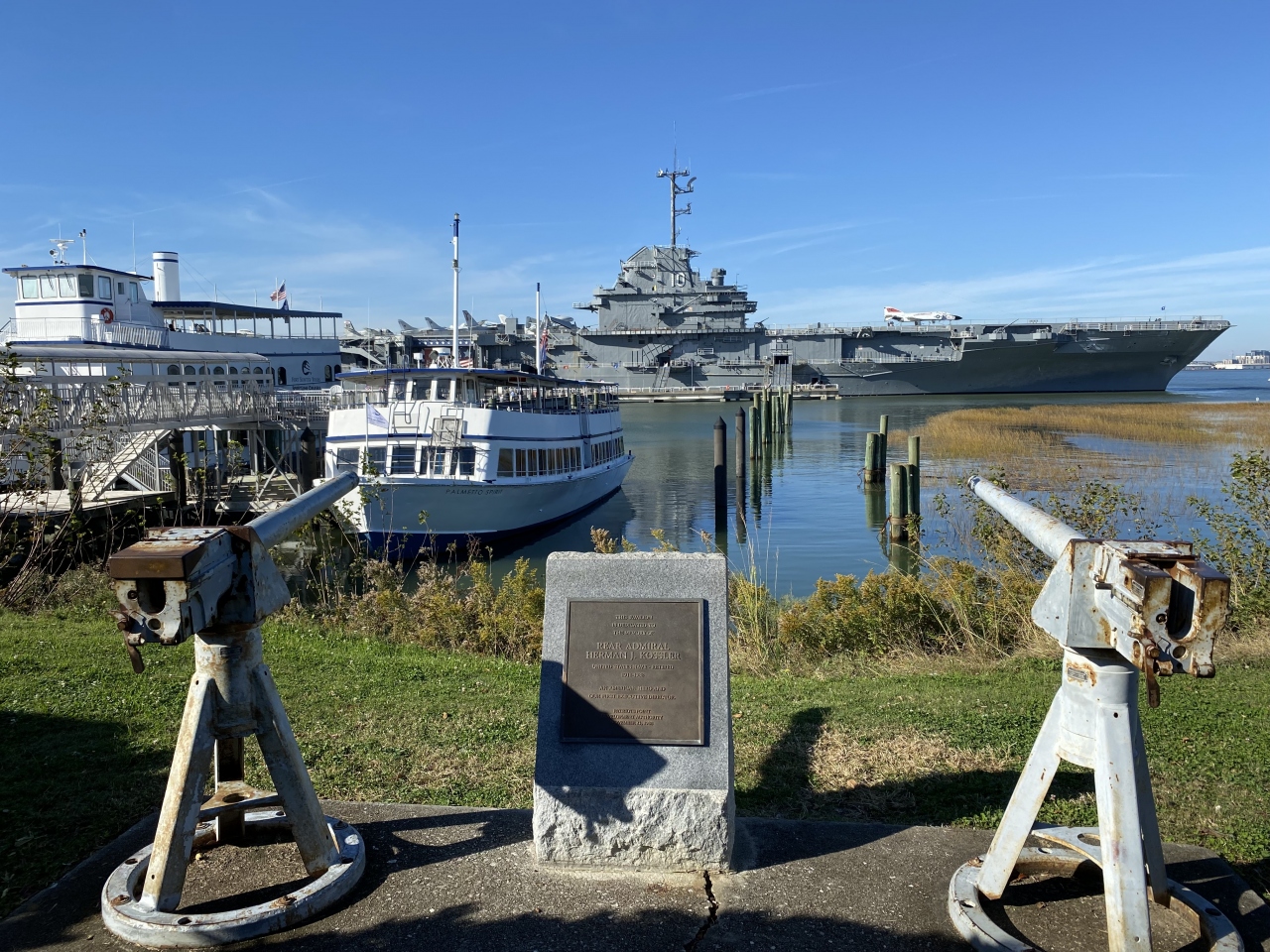 パトリオッツ・ポイントには、「空母USSヨークタウン(CV-10)」「駆逐艦ラフィー」という2隻の博物館船があります。2021年までは潜水艦もありましたが、残念ながら老朽化等によりなくなってしまったらしい。ここからは「サムター要塞」への遊覧船も出ています。ヨークタウンの格納庫には往年の軍事航空機がずらり。戦闘機の格納庫から「START TOUR 1」の案内に沿って、動力や居住のエリアがある艦の内部へ。長期の生活の場となっているインフラも興味深いです。フライトデッキにも戦闘機や軍用機がズラリ。艦橋にも登れて、空母のすべてを見尽くせる興味深い場所です。見どころが多すぎて3時間くらい居ました。サンクスギビングデーでも開いていたので良かったです。
