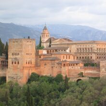 アルハンブラ宮殿を遠望するならやはりここでしょう。人は多いけどそれだけ行く価値のある場所ということで。縁に座って長時間過ごす観光客も多いので、時期や時間帯によっては場所取りが大変です。夜のライトアップされたアルハンブラ宮殿が撮影できるポイントとして有名です。