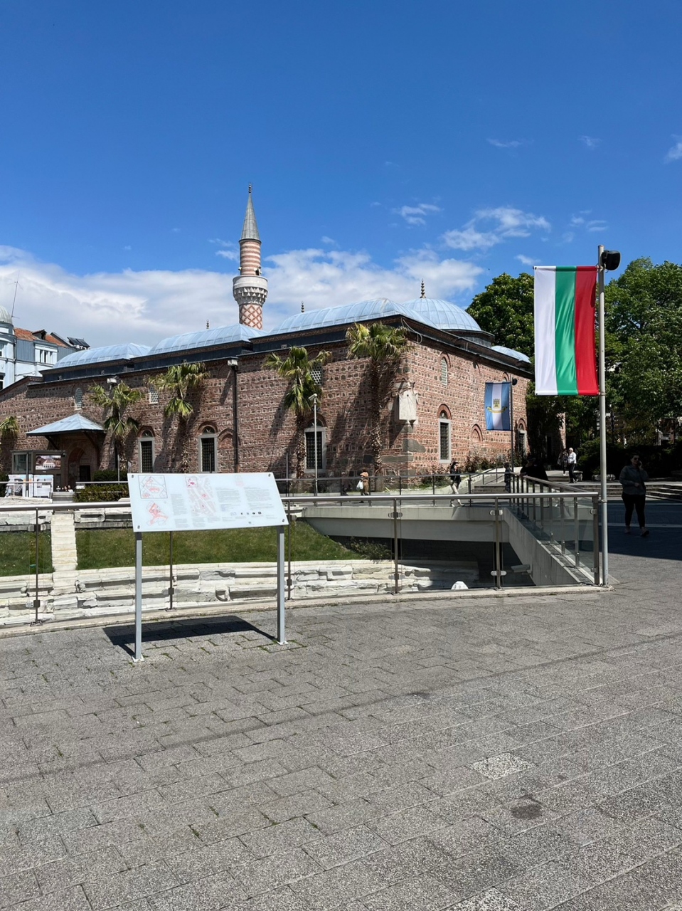 中央広場から歩行者天国になっているアレクサンダル・バテンベルグ通りを歩いて行くと突き当たるのがこの広場です。地下にはプロブディフの円形競技場があり、それを眺めるようにカフェもあり。視線を挙げればジュヤマ・ジャーミヤのイスラム寺院が見えるまさにプロブディフの中心地という感じです。